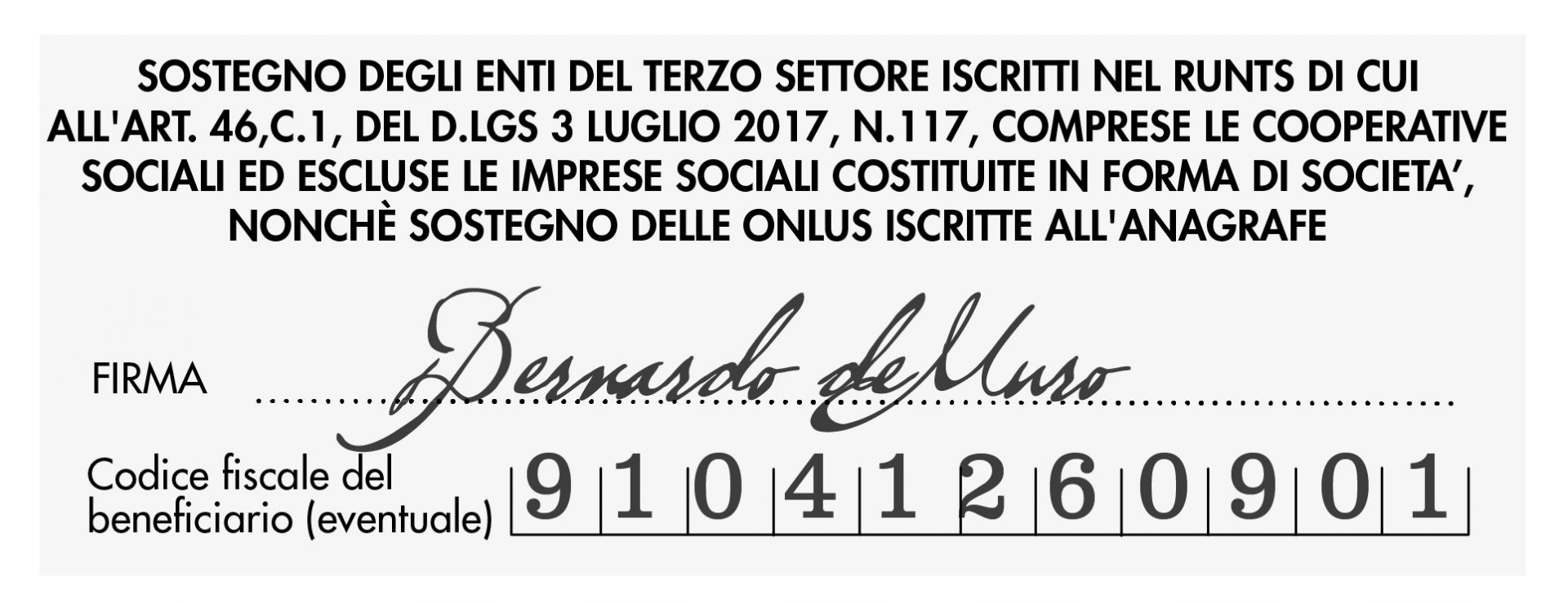 Inserisci sotto la tua firma il Codice Fiscale di Fondazione Bernardo De Muro: 91041260901